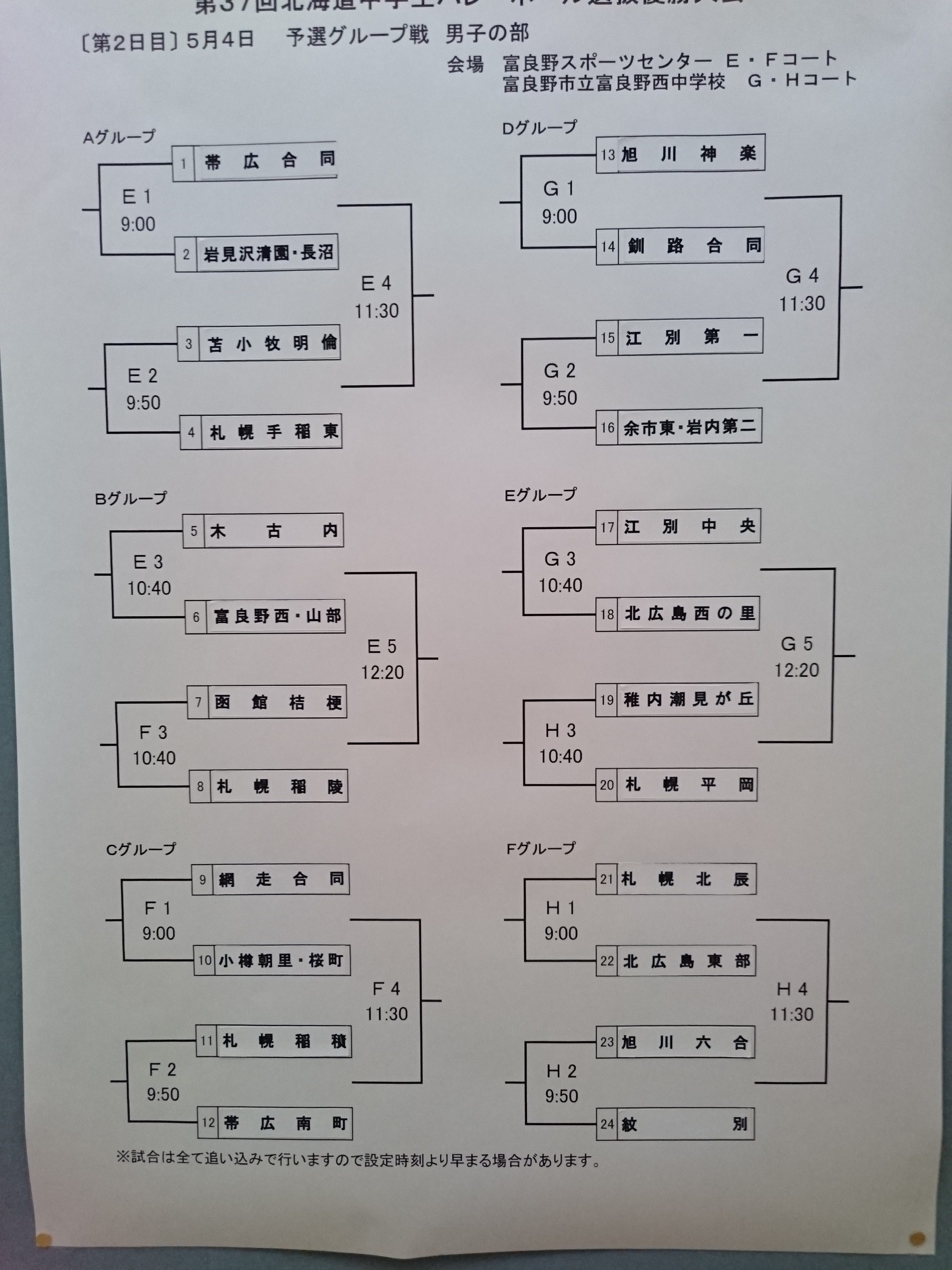 予選グループ戦の組合せです。